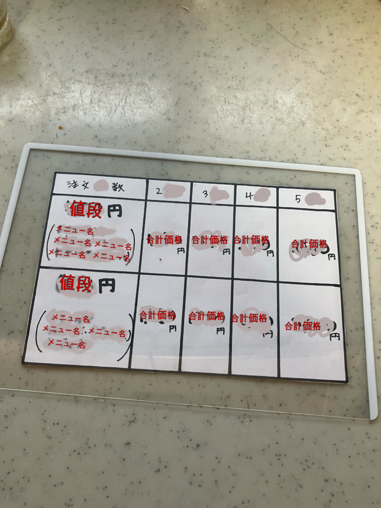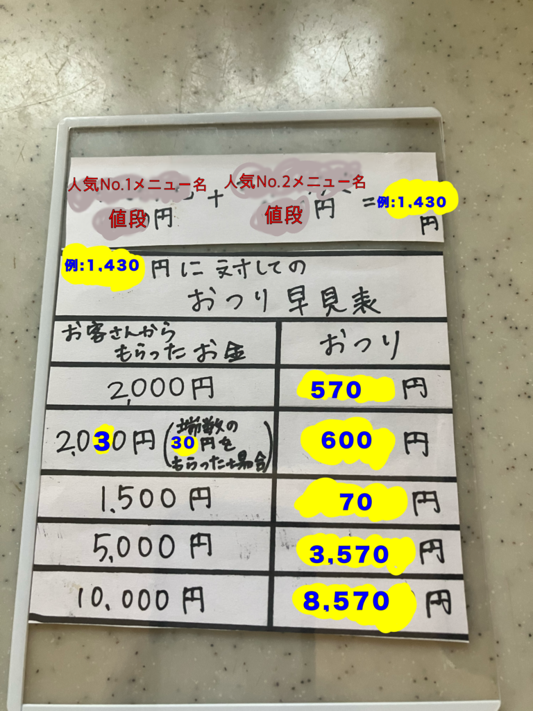 お店の計算がぱっとわかるようなもんがあるとええかなぁ