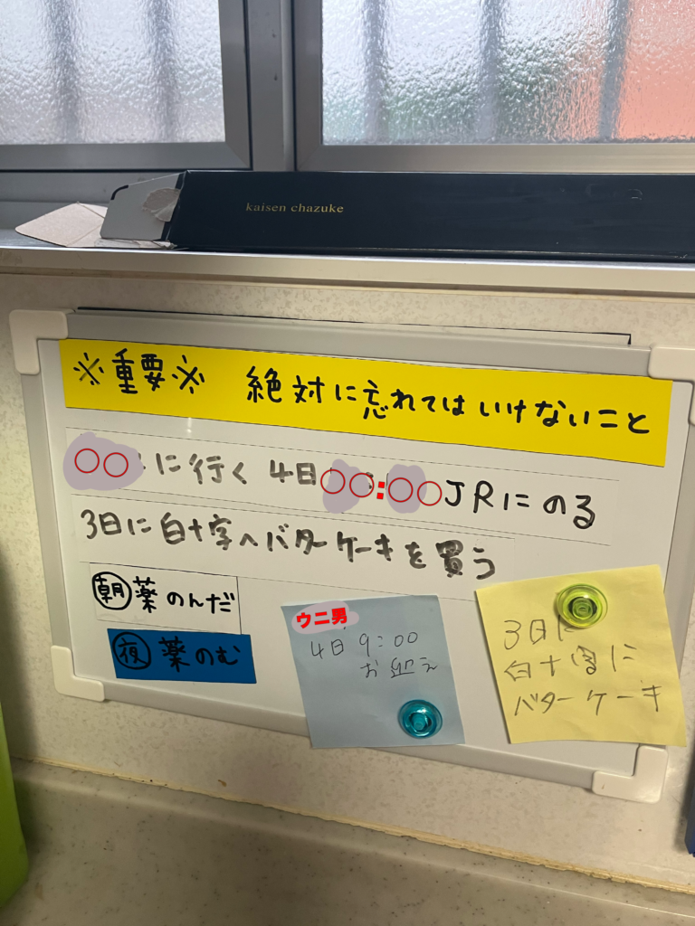 でも、明らかに記憶障害が出始めてる現状があるということは、生活する上で何らかの対策をしなくちゃいけないわけで。