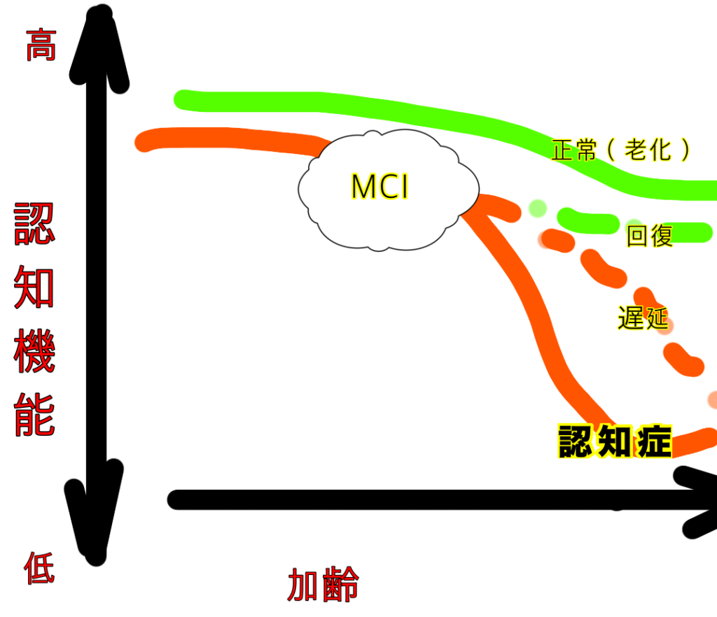 MCIを過ぎても初期に対策をとれば、進行はしていくけれどもゆるやか~な進行に抑えることもできる。